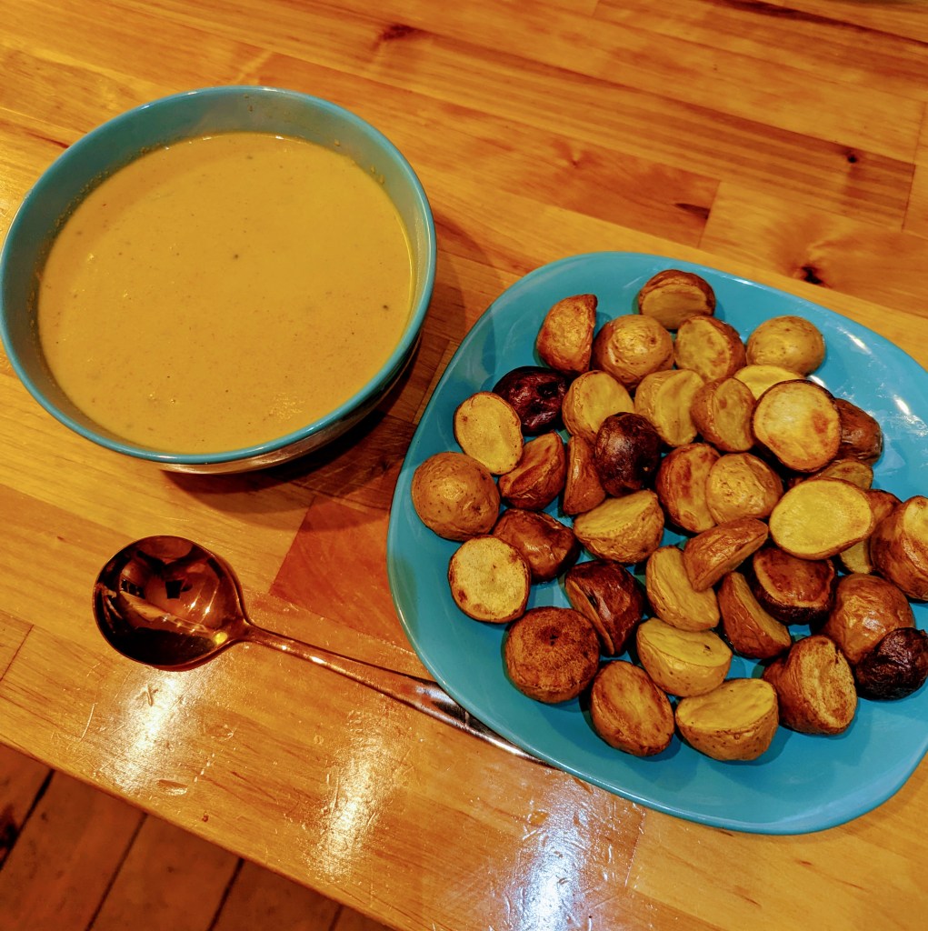During the holiday season, when my calendar fills with late nights and tables overflowing with rich, lavish meals shared with amazing people, this soup becomes my reset. It’s the bowl I reach for when I want something grounding and nourishing without giving up comfort. Roasting the carrots draws out their natural sweetness, while coconut milk wraps everything in a soft, soothing richness. What really makes it feel like a tonic, though, are the aromatics: garlic and ginger warmth, golden turmeric from the curry, and the sensory luxury of saffron blooming in warm water. As the pot simmers, the kitchen fills with scents that feel restorative, almost medicinal, reminding me to slow down, breathe, and come back into balance…until the next feast!
